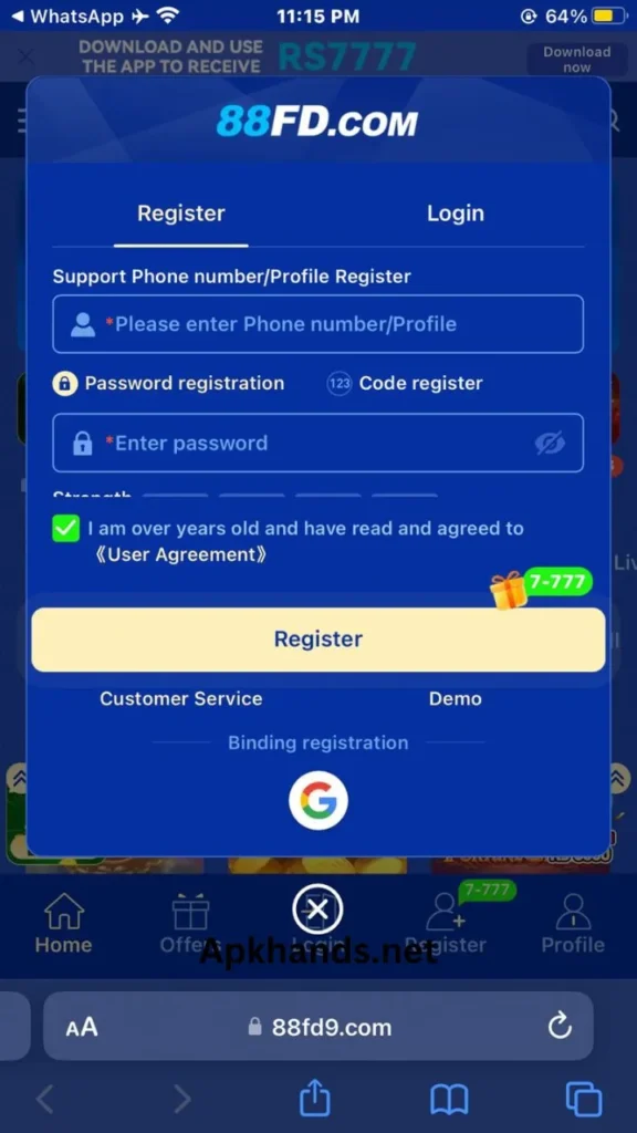 How to Register on 88FD Game